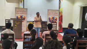 CG News: रायपुर में संस्कार भारती छत्तीसगढ़ द्वारा आयोजित “युवा रंग साधक नाट्य कार्यशाला” के चौथे दिन NSD स्नातक और प्रख्यात रंगकर्मी हीरा मानिकपुरी का विशेष सत्र आयोजित किया गया।
